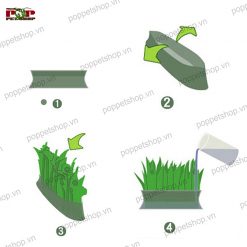 Chúng ta mở túi. Cho cỏ dựng đứng trong bát rồi đổ nước. Khi hết nước chỉ cần đổ thêm. Nhớ sử dụng đồng hồ để đo độ ẩm nhé quý vị. Đặc biệt là các bạn miền bắc: “Thời tiết rất hanh khô vào mùa thu”. Ví dụ đồng hồ báo độ ẩm thấp quá cần đặt vị trí cỏ này ở góc khác. Để nó bao phủ được nhiều khu vực hơn.