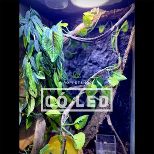 Bạn có thể thấy cùng 1 chiếc chuồng kính chuyên dụng D40 R40 C60. Với thiết kế bên trong 30% lá cây xanh trang trí. Có lót nền vỏ thông và tấm background Phủ PU đẳng cấp 3D. Cũng là con Tắc Kè đó và cũng là cành lũa cây đó. Nhưng khi đặt đèn LED vào chuồng – Nó khiến chuồng sang trọng lên hẳn. Từ 3 sao lên 5 sao. (HÃY ĐỂ Ý KỸ TẤM ẢNH CÓ NỘI DUNG: CÓ LED – CHẤT LƯỢNG MÀU MÀ ĐÈN PHÁT RA)