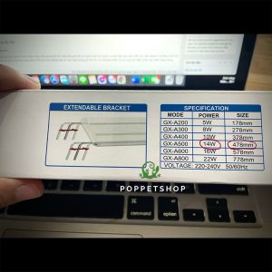Đèn LED với chân gác kẹp 2 bên thành bể. Nếu chuồng bò sát của bạn là dạng không có nắp. Chỉ có 4 cạnh. Sẽ cần sử dụng tới 2 chân gác kẹp này. Thiết kế này còn cho phép nâng máng đèn led lên phía trên giúp cho mặt bể thông thoáng và cân đối. Ngoài ra có thể bỏ chân gác kẹp này ra đăt thẳng lên lưới như các ảnh chuồng bò sát phía trên.